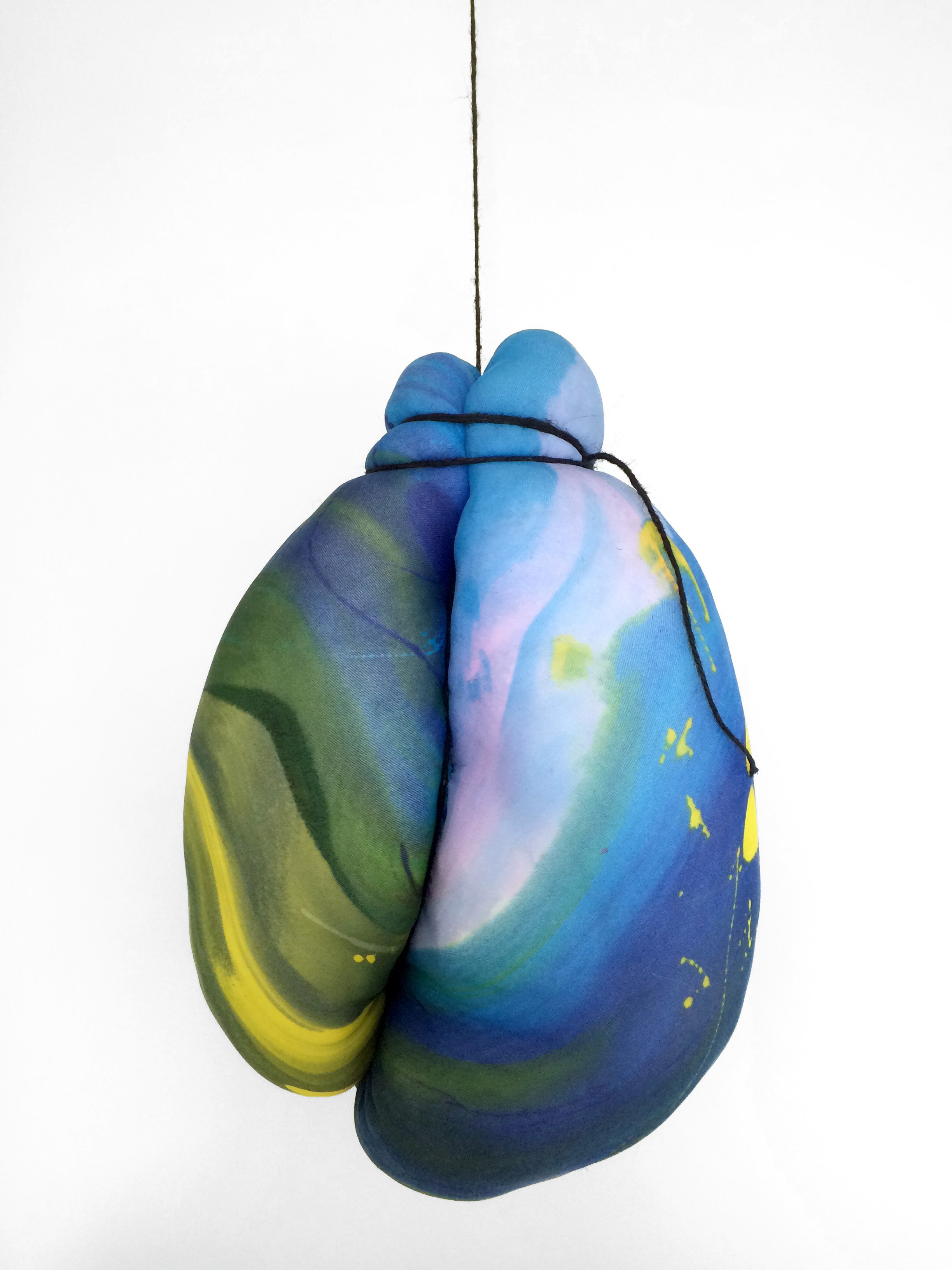 The shapes in my works imply primordial human feelings of comfort which produce a sensation of healing, while at the same time to dye, tie or stitch allows for the emotional and material landscape to balance. By working in 2D to 3D, viewers can experience multiple dimensions of my work.